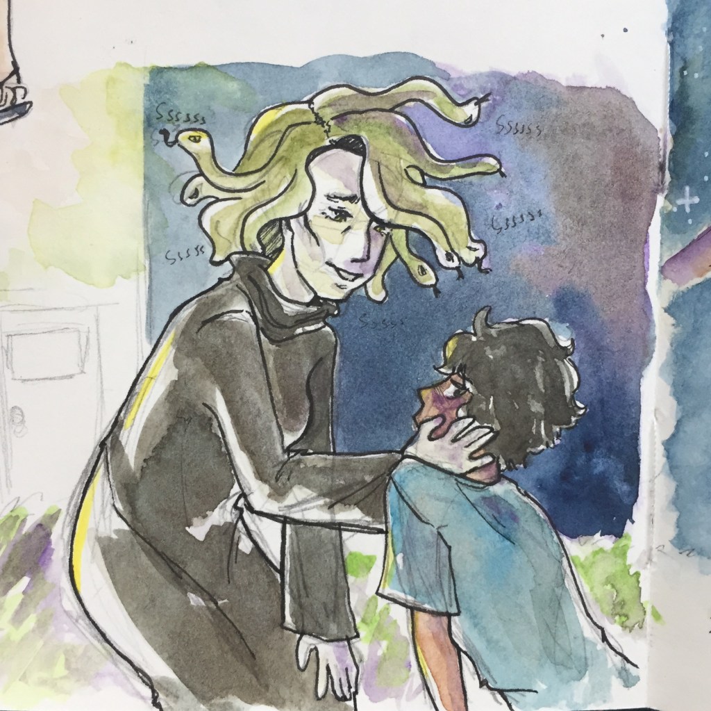 Par ailleurs, je ne visualise absolument rien quand je lis, je n’ai aucune idée de ce à quoi ressemblent les personnages (j’ai juste leur description physique dans le livre en gros). Pour ça que mes dessins sont super bancals mdr.